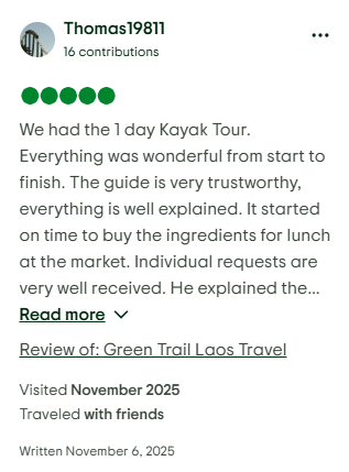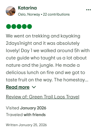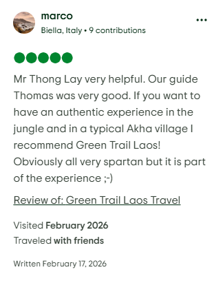– Return: 3-4pm at Green Trail Laos office